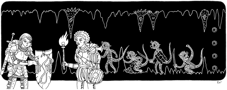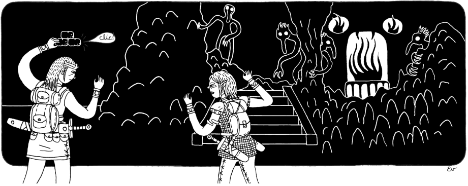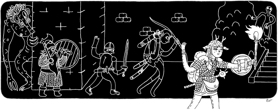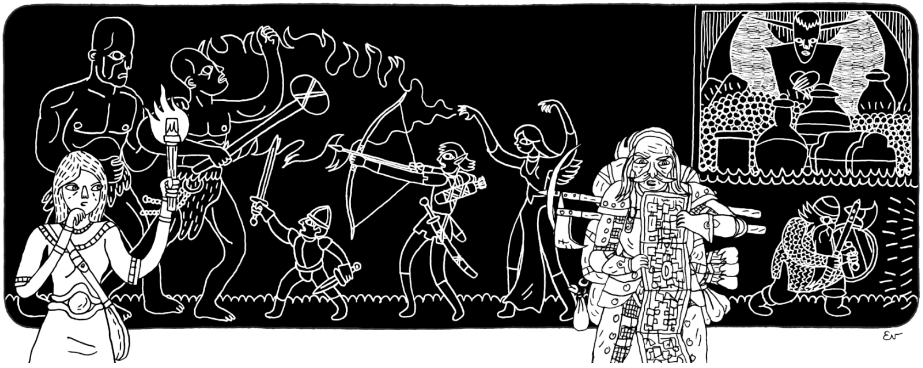 And remember, through play, a story emerges larger than any one character. You will make your mark on the world, be it an unknowingly misleading arrow scratched into a dungeon wall, or a crater where a city once stood.